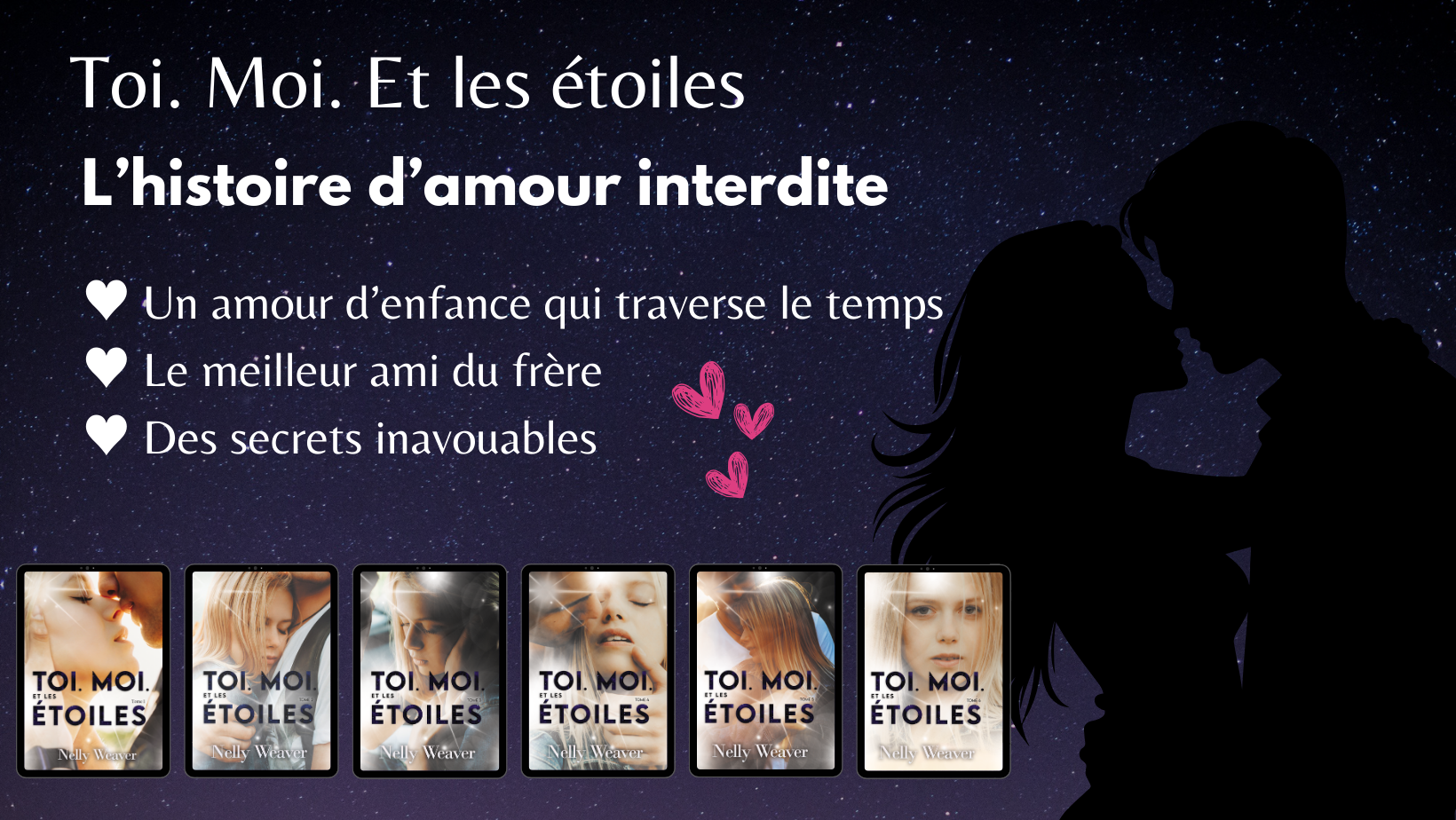 Moi, c'est Nelly, une romantique dans l'âme, accro aux émotions. Dans mes romances je t'offre toutes ces émotions refoulées que je déverse dans mes livres comme un exutoire. Toi. Moi. Et les étoiles ma toute première saga a gravé en plein cœur de nombreuses lectrices et continue de faire parler d'elle à travers une thématique difficile, mais essentielle.